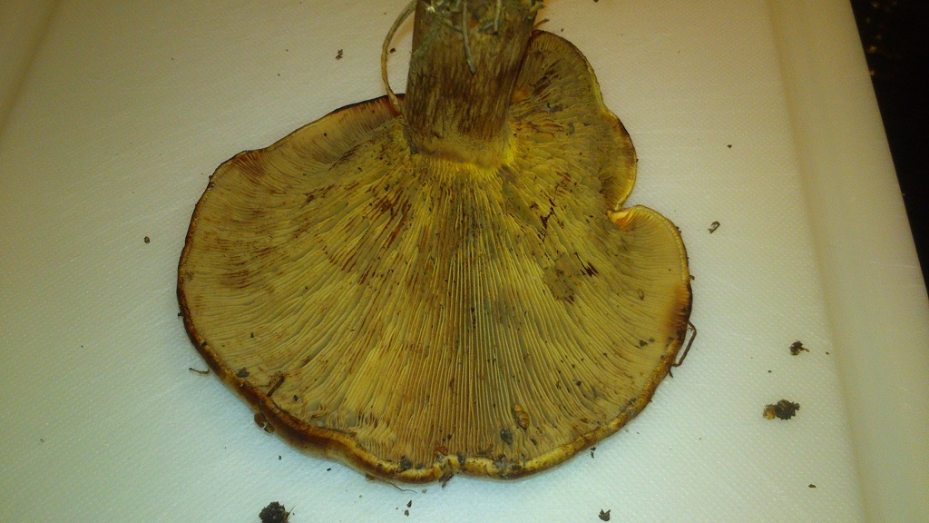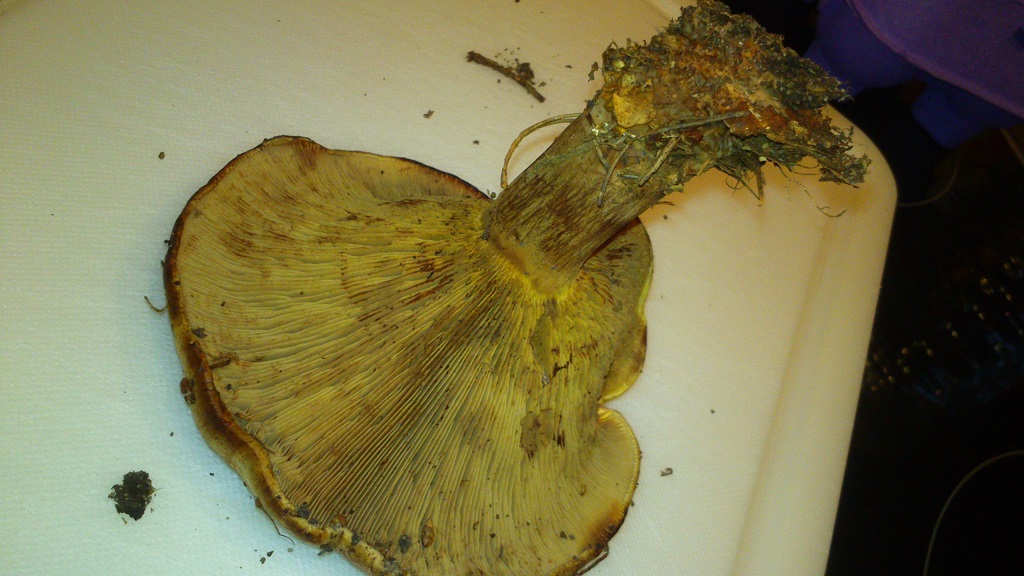 Waren Schwarz- oder Grauerlen in der Nähe? Dein Erlenkrempling lebt nur mit diesen in Symbiose. Daher wird es sich bei Deinem Exemplar höchstwahrscheinlich um den Kahlen Krempling handeln, der in der Wahl seiner Symbiosepartner nicht wählerisch ist und mit so ziemlich jedem Nadel- bzw. Laubbaum "kann" ![]()