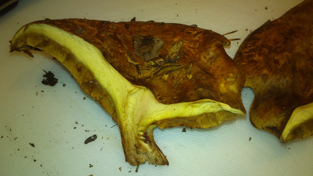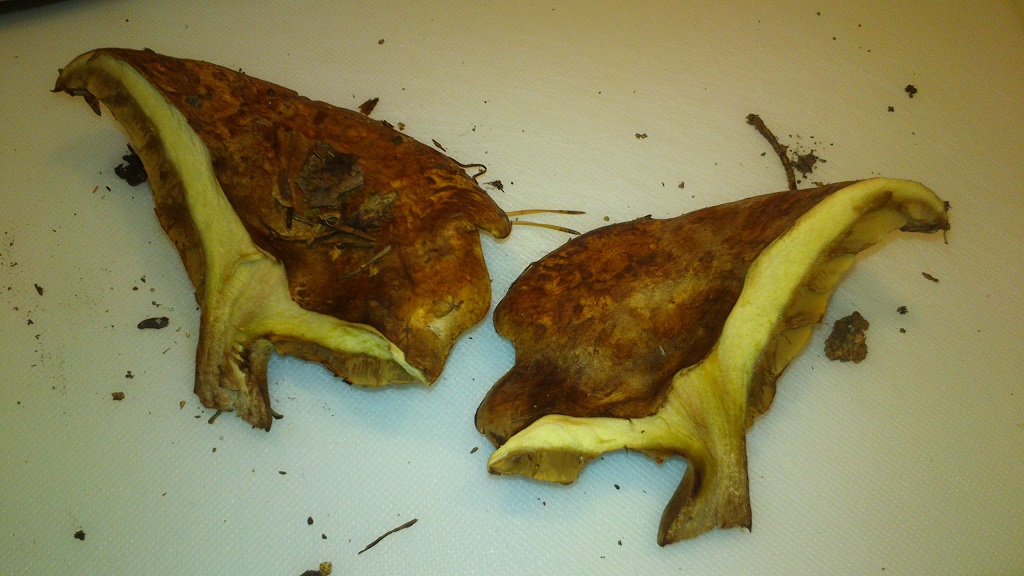 vergleiche den einmal mit dem Kahlen oder Verkahlenden Krempling (Paxillus involutus)