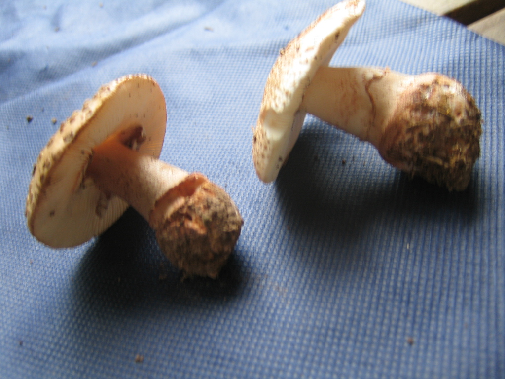 Die Rosafärbung läßt mich auch auf einen Perlpilz vermuten. Traue mich nicht ihn in die Pfanne zu tun. -