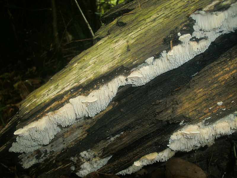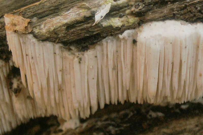 Ist das Irpex lacteus , der Milchweiße Eggenpilz (aber da sollen die Zähnchen nicht so lang werden, sagt Aphyllopower )?