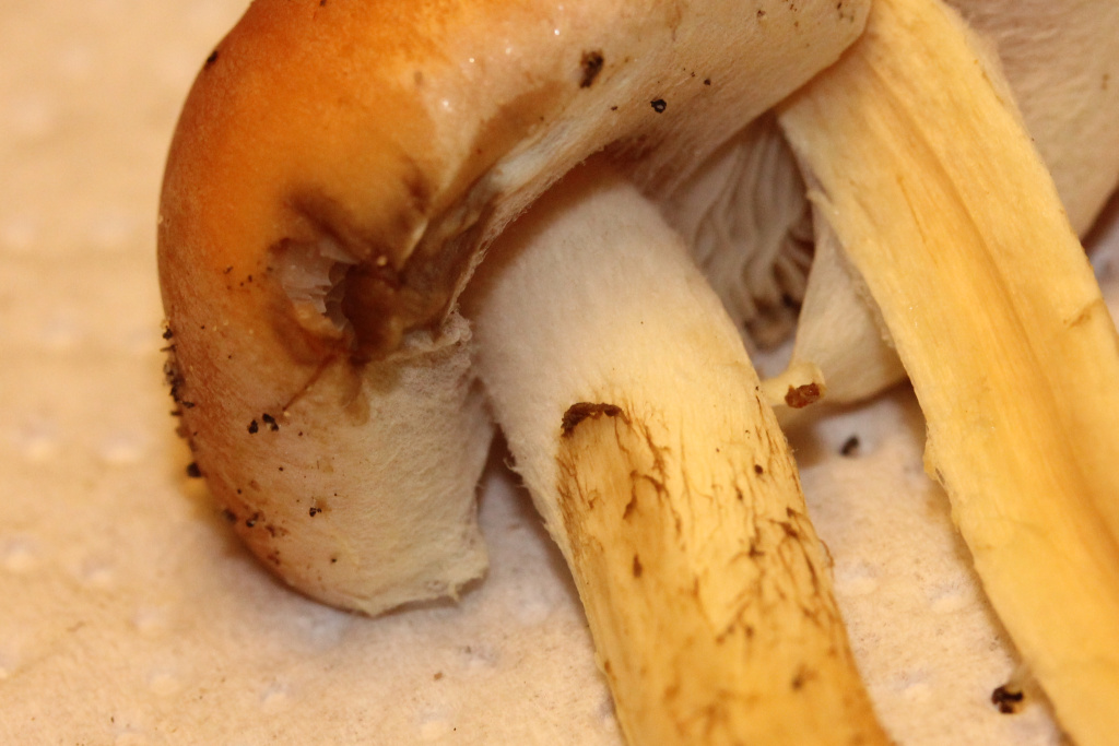 Heute waren Pablo, Stefan und ich im Pfälzerwald unterwegs. Dort fanden wir neben vielen weiteren spannenden Funden die folgenden Zersetzer-Pilze, bei welchen wir vermuten, dass es sich um safranrote Schüpplinge (Pholiota astragalina) handeln müsste. Da wir die Art noch nicht aus eigener Anschauung kennen, möchten wir uns natürlich absichern, da sie ja leicht mit dem ziegelroten Schwefelkopf verwechselt werden kann.