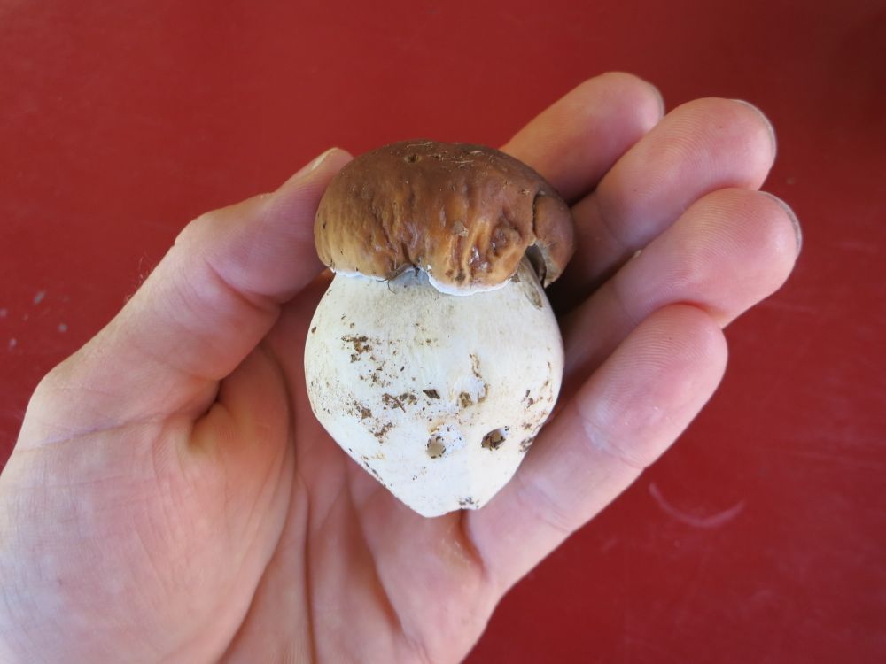 Die beiden größten Steinpilze, nein beide sind nicht weich und gammelig, sind 15-20 cm hoch und schön fest vom Fleisch her.Liebe Grüße