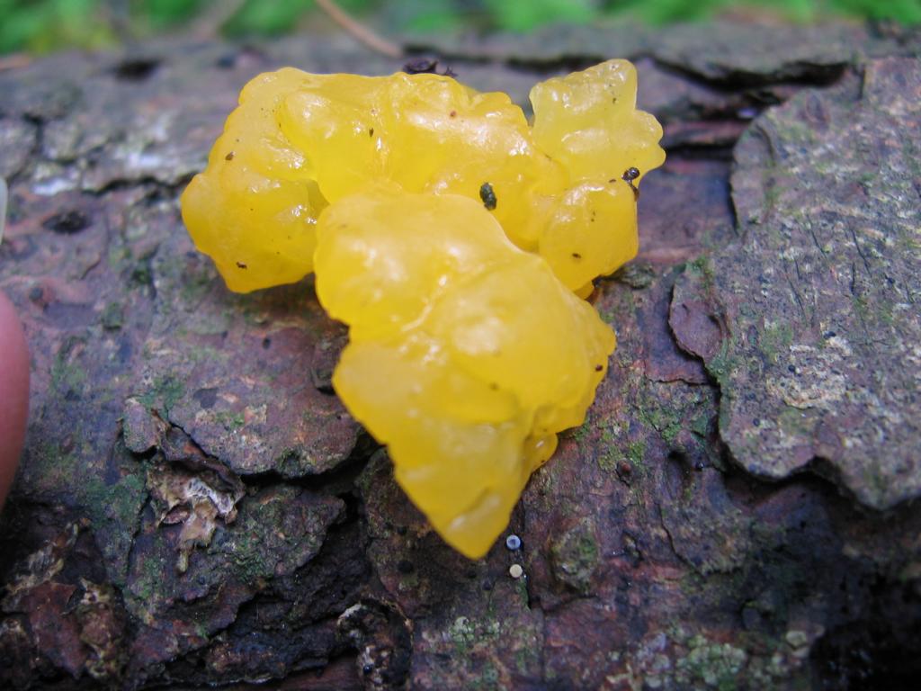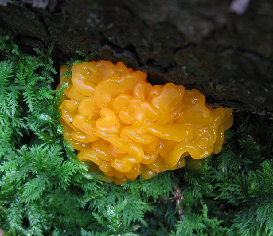 a) Nehme ich an ist die Zerfliessende Gallertträne (Dacrymyces stillatus) wenn ich nicht irre und es wieder ähnliche Pilzchen gibt. ![]()
