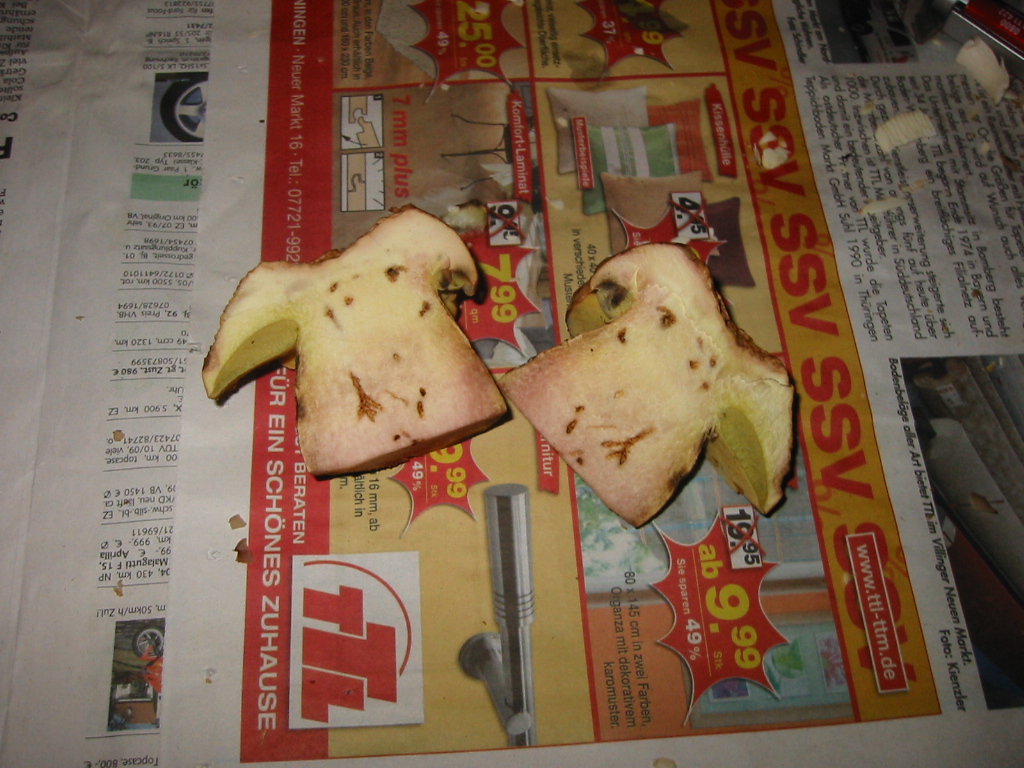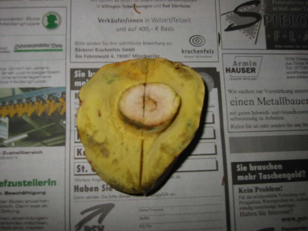 an den röhren selbst wurde der pilz sehr schwach blau allerdings an der ausenseite nicht zum fleisch hin! der schnitt selbst blieb wie auf dem foto zusehen ist nur diese leicht rosa verfärbung![hr]