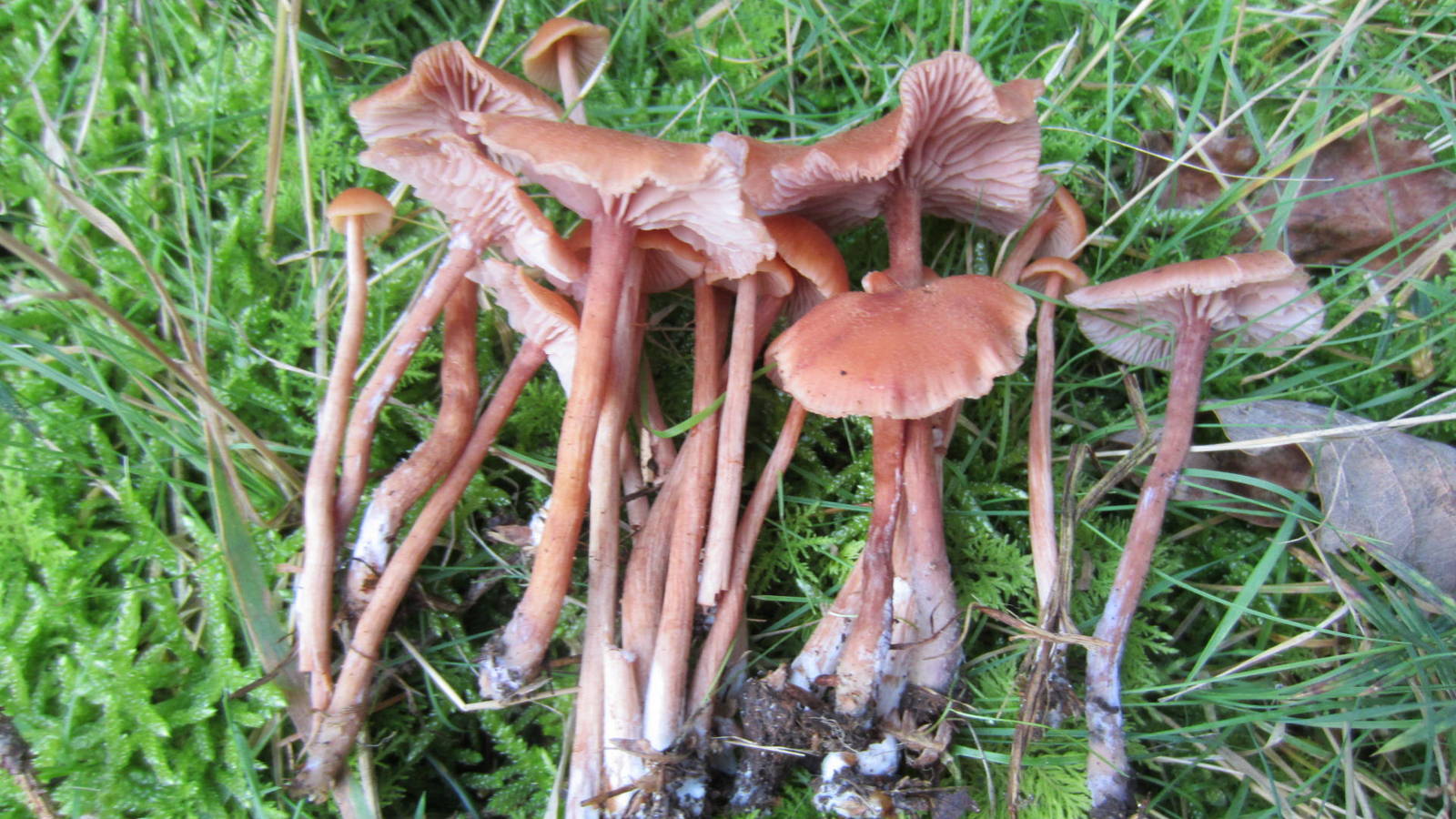 Von essbaren Pilzen gab es dann noch ein paar Pfirsichttäublinge (Russula velupites), Violette und Rötliche Lacktrichterlinge, Langstielige Knoblauchschwindlinge, ein Schopftintlig, von denen ich vor Ort leider keine Fotos machen konnte. Ein paar Röhrlinge gab es auch, leider waren diese bereits vergammelt. Von den ungenießbaren bestimmten Pilzen fehlt hier noch der Tintenfischpilz, von dem ich leider auch kein Foto machen konnte, da meine Kamera nicht mehr mitmachen wollte.
