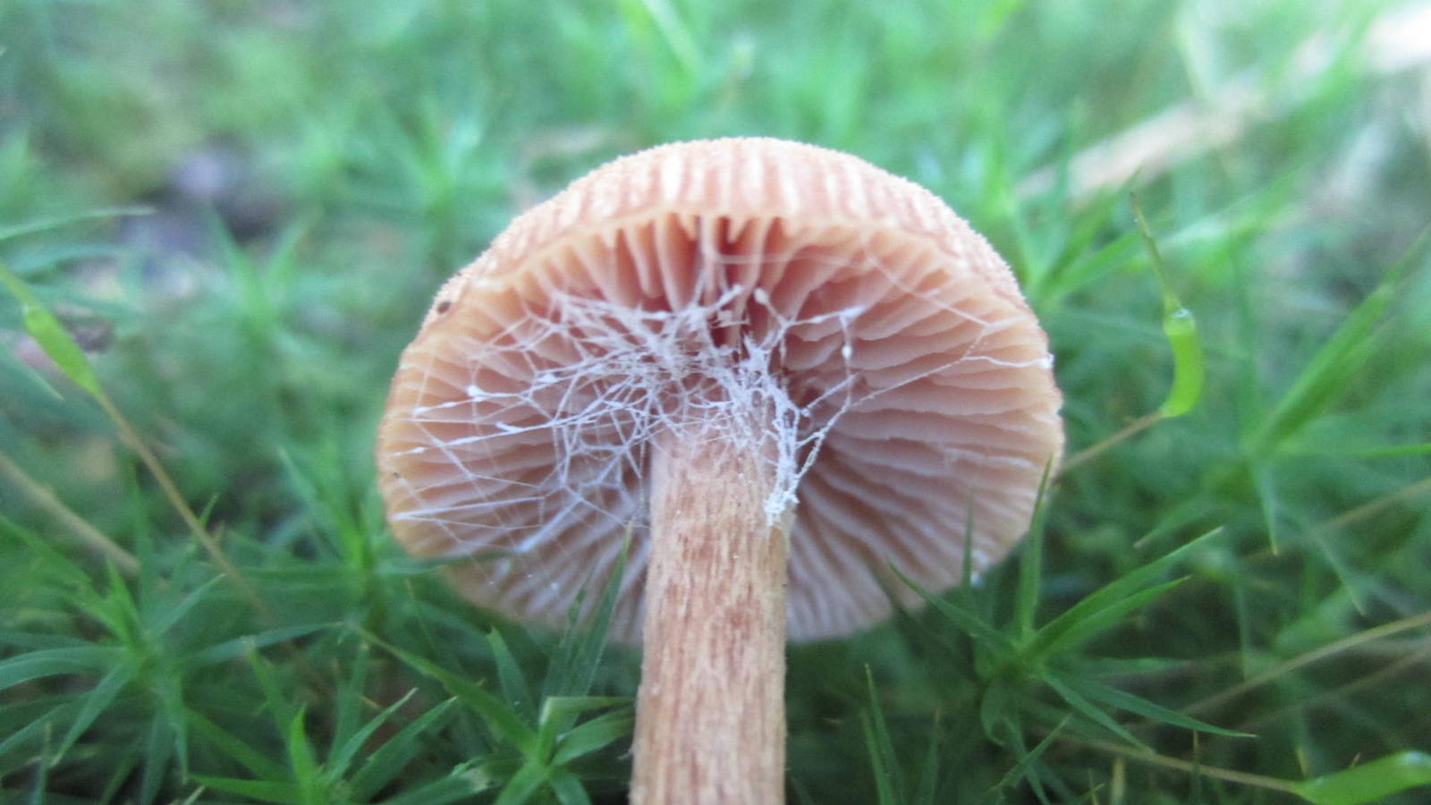 6) Der Rosa Rettich-Helmling (Mycena rosea, syn. M. pura var. rosea)