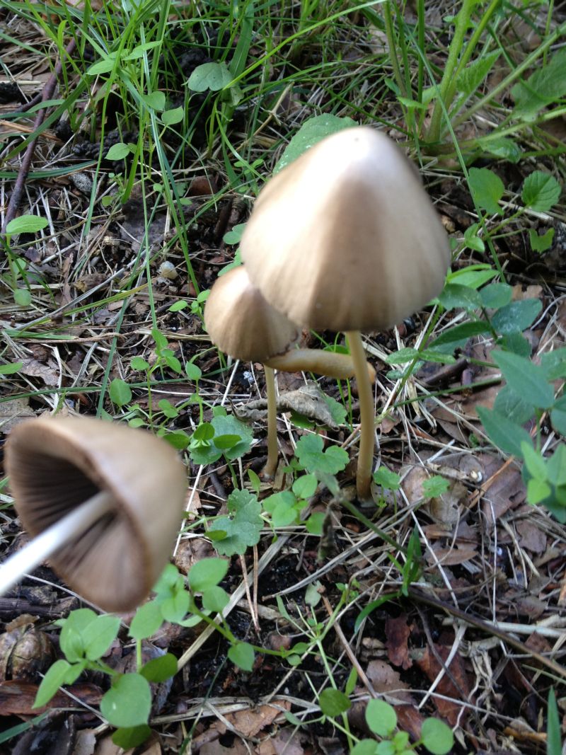 Pilz Nr. 1 ist eine Faserling. Könnten vielleicht ausgeblasste Exemplare von Psathyrella conopilus (Huthaarfaserling) sein.