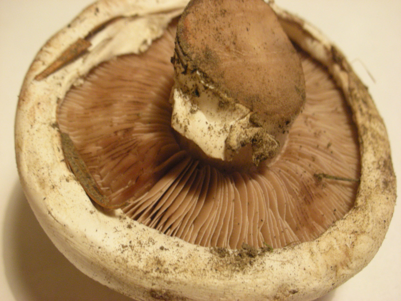 Gestern abend fand ich unter der Eibe vor meinem Haus einige "Champignons", die dunklen Lamellen gaben mir zunächst "Sicherheit". Die Pilze röten allerdings stark beim Anschneiden (das Fleisch wird rosa-bis lachsfarben), was für mich den Kaarbol-Egerling ausschloss - allerdings riecht der Pilz ein wenig unangenehm, irgendwie erdig, kann es schlecht beschreiben.
