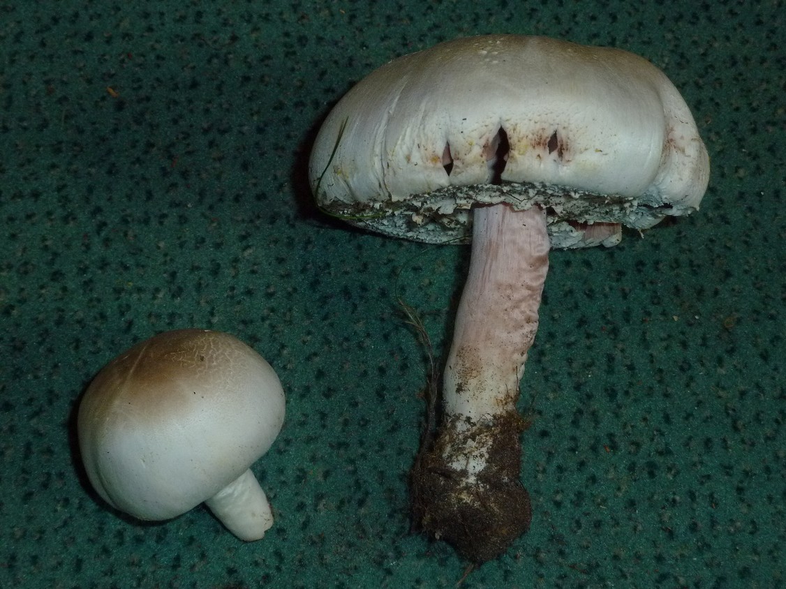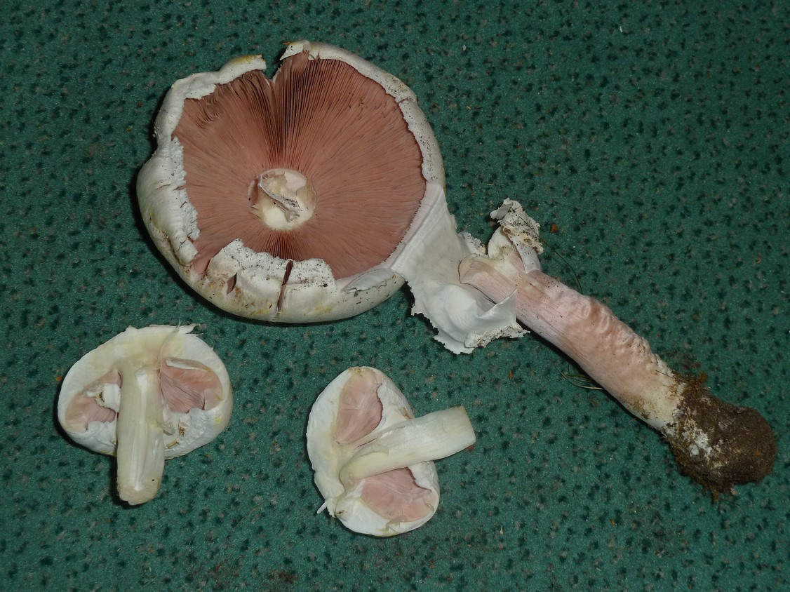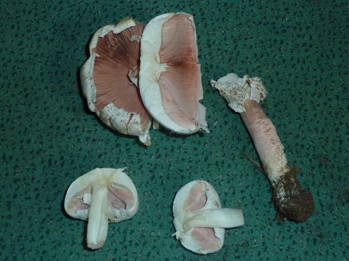 Das war nur so eine Idee, weil die Pilze habituell doch sehr dem Wiesenchampi (Agaricus campestris) ähneln. Da gibt es noch den Falschen Wiesenchampi (Agaricus pseudopratensis), der zur Karbol - Gruppe gehört, und dessen Fleisch in der Stielbasis nach Anschnitt rasch von Chromgelb zu ornage oder rot umfärbt. Ist aber recht selten und ich selbst hatte den noch nie finden können.