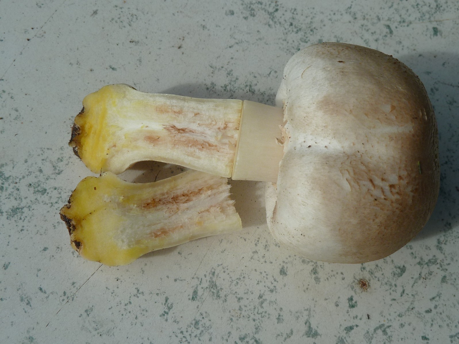 Der Stiel verfärbt sich beim durschneiden gelb.