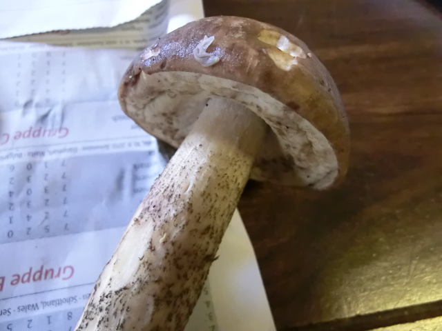 Zuletzt noch eine Frage zu diesem Pilz den ich im Nadelwald bei meiner Pfifferlingsuche gefunden habe. Was für ein Leccinum könnte er sein?