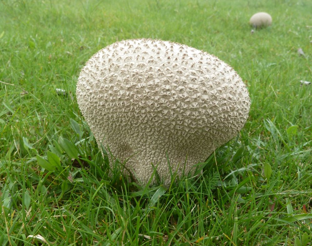 Auf der ganzen Insel omnipräsent, wo auch immer kurzes Gras wuchs, waren Stäublinge, Staubbecher, irgendsowas. Wobei ich mich bei der Bestimmung teilweise schwer tue, die Fotos geben so viel nicht her, und nicht alle waren so eindeutig wie diese Getäfelten Großstäublinge am Flughafen: