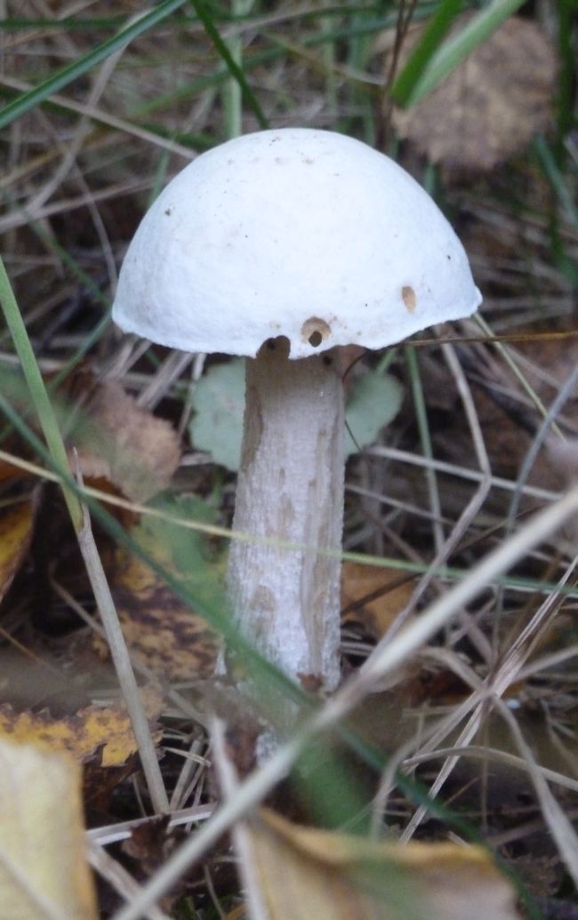 Ein weißer Birkenpilz! Gut sichtbar, aber ganz frech so leuchtend weiß aus dem Schutz eines Hagebuttenstrauches, dass der gemeine Sammler angesichts der vielen aus dem hohen Gras, Moos, Erika, wasauchimmer blitzenden, fast weißen Knollis verächtlich über ihn hinwegsieht. Die Strategie ging bestens auf, er blieb da stehen, bis er von selber umfiel.