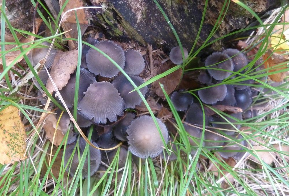 Hier habe ich einen Schwarm (Gelbschuppige?) Tintlinge am Fuß einer toten Birke gefunden: