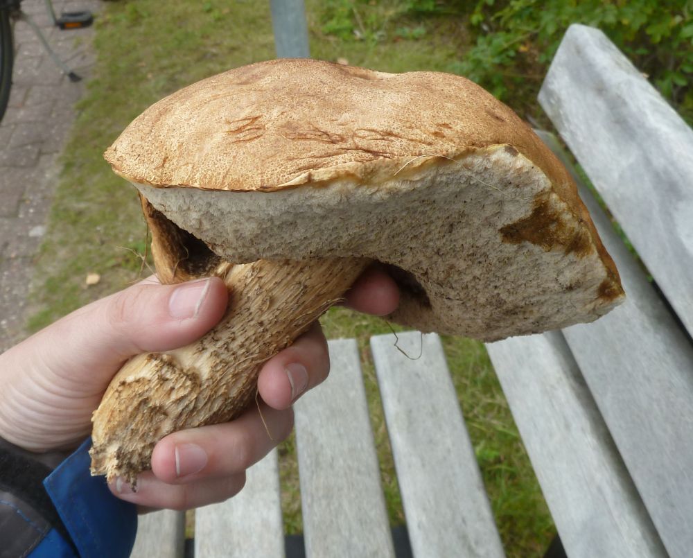 Im Norden in der Waterdelle fand sich dagegen kaum etwas–¦ bis ich auf einem der gepflasterten Wege hart in die Bremsen stieg und ungläubig dieses Exemplar von einem Birkenpilz zwischen den Hagebutten hervorfischte:
