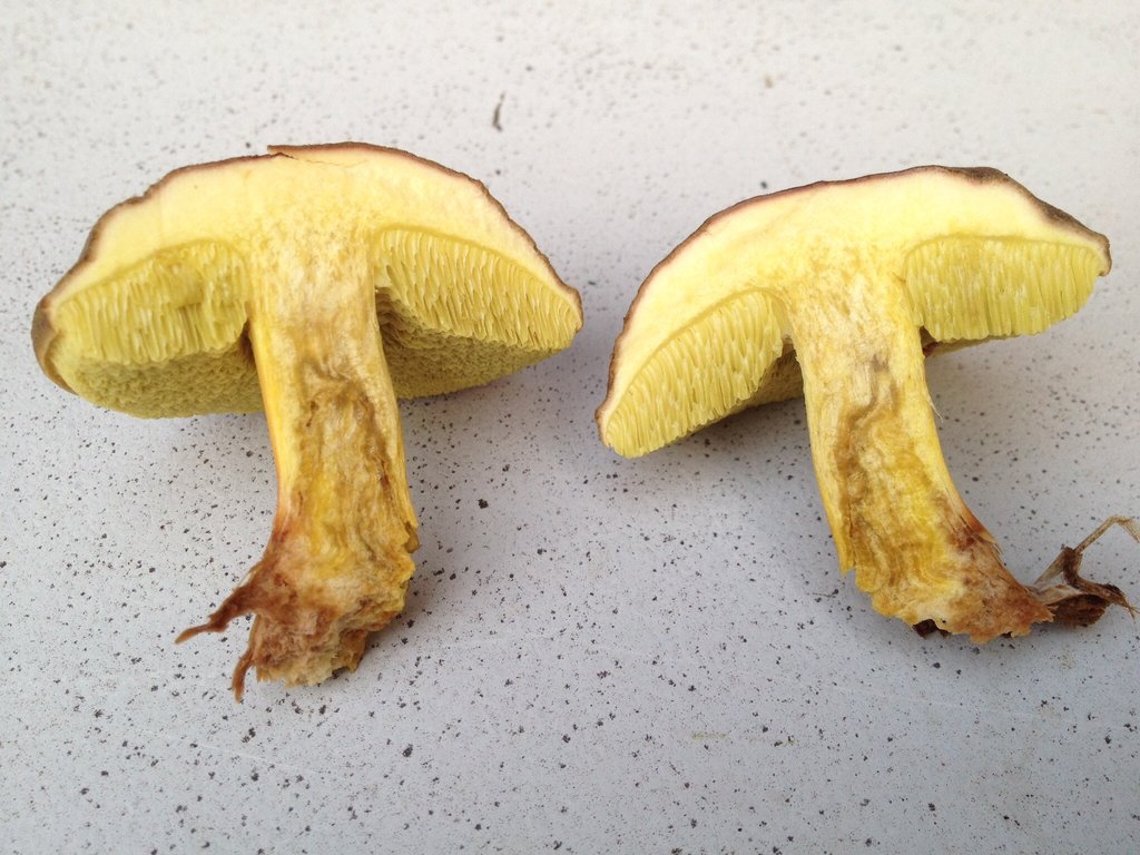 Aber der ferrugineus hätte schon irgendwie deutlich blasseres Fleisch. Dann eher noch eine Ziegenlippe (X. subtomentosus).