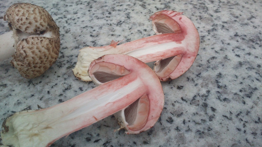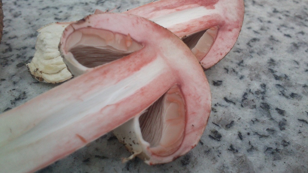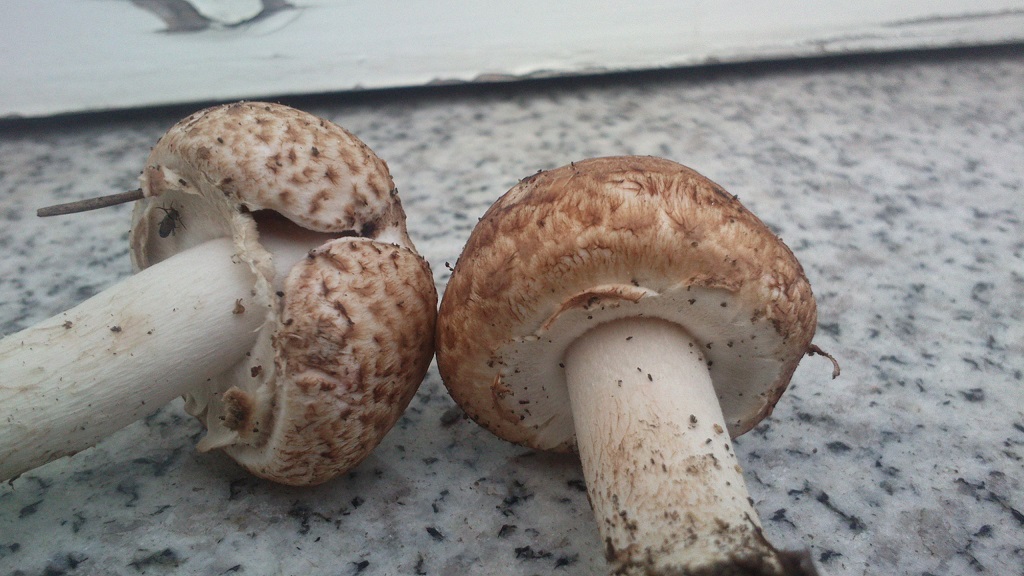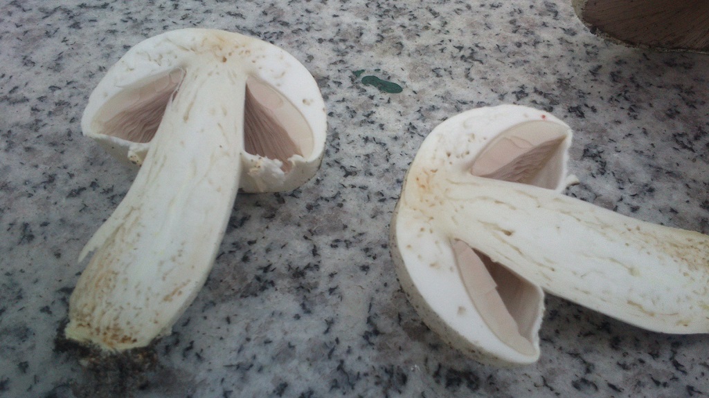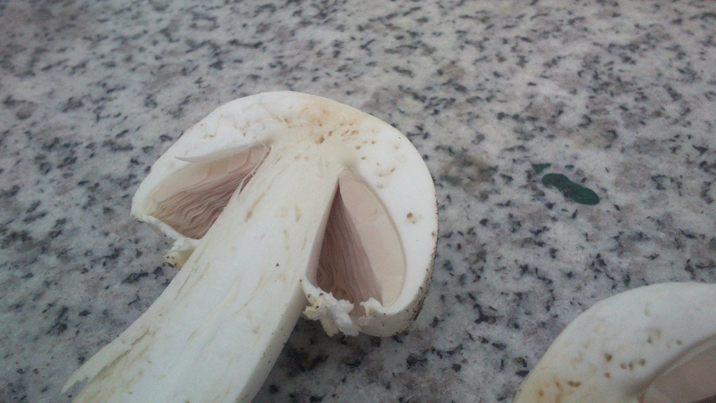 2) mit weißer Kappe weiß ich nicht recht, eine recht groß Hut etwa 10cm der kleinere etwa 5cm, Geruch leicht pilzig und etwas Anisgeruch bin mir aber nicht sicher. Vielleicht ein Anischampi ?