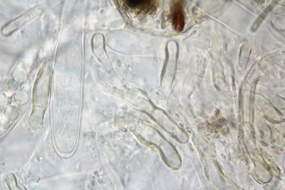 Die 16–“25 × 4–“6 µm großen Sporen sind hyalin, glatt, länglich-sichelförmig und besitzen vier bis sieben Septen. Die Asci sind zylindrisch-keulig und werden 140–“160 × 8–“10 μm groß. Die Paraphysen sind fädig und teilweise verzweigt.