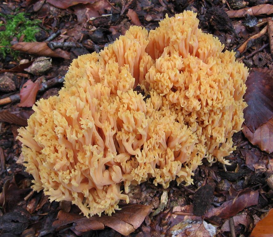 R. flava und R. aurea hatte ich schon in Österreich, die sind deutlich gelber, ansonsten natürlich ähnlich in der Größe und Form. Allerdings sehe ich hier deutliche Rosatöne auf der mittleren Höhe der Verzweigungen, sodass es sich möglicherweise um die Dreifarbige Koralle (R. formosa) handeln könnte.