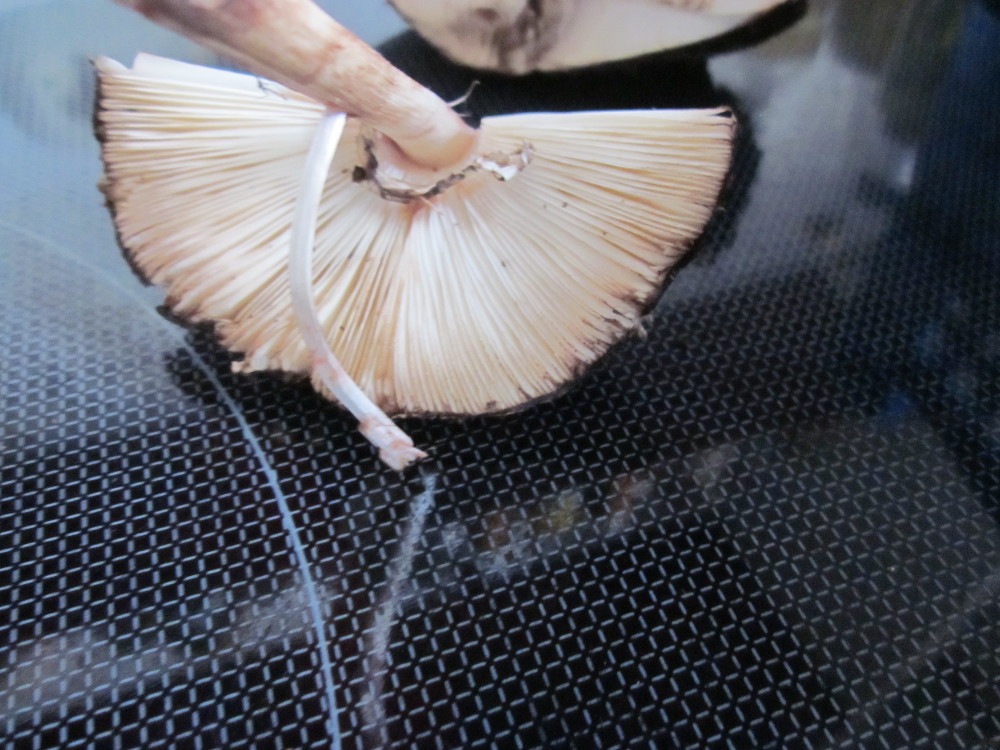 Ich dachte es müssten Safranschirmlinge sein, da sie sich an Einsschnitten und Druckstellen sehr schnell rot färbten (Mittlerweile ist es schwarz geworden und das Fleisch verfärbt sich auch nichtmehr bei neuen Verletzungen).