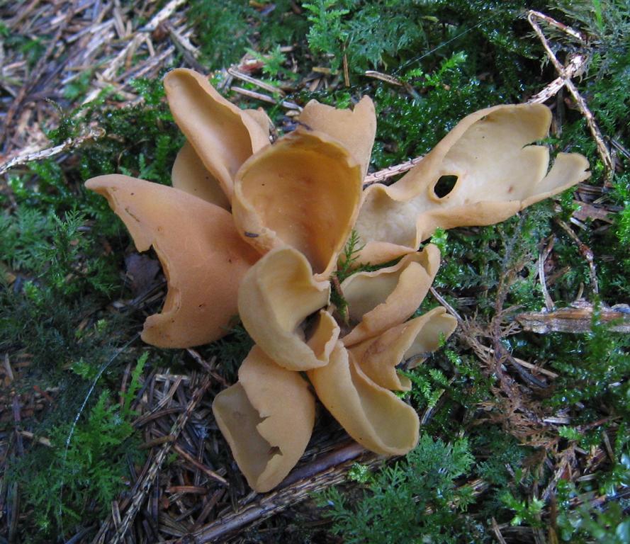 Ich fühle mich aber in der Gattung nicht sehr zu Hause. Bei der Bildersuche nach gewissen Arten kommt es mir so vor, als seien es andere auch nicht.Otidea abietina (Nadelwald-Öhrling) hielt ich bisher für eine beinahe büschelig fruktifizierende Art in der Nadelstreu ohne diesen Eselsohr-Löffelwuchs in die Höhe, bei denen die Einzel-Apos teilweise ineinander verhakt sind.