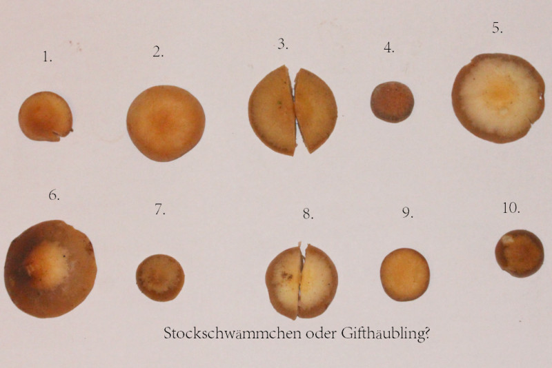 aus aktuellem Fundanlass möchten wir ein kleines Rätsel einstellen, welches auf den gefährlichen Doppelgänger des Stockschwämmchens (Kuehnoeromyces mutabilis) , den Gifthäubling (Formenkreis Galerina marginata s.l.) aufmerksam machen soll. ![]()