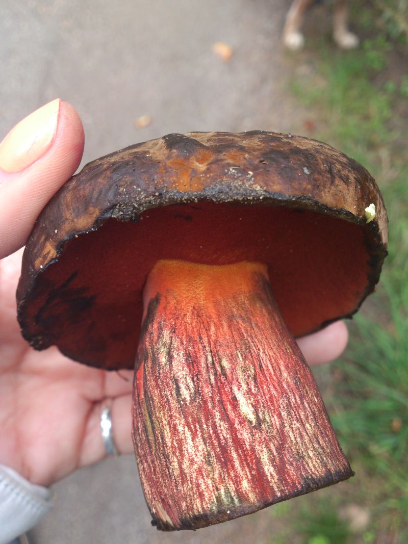 Allerdings habe ich extra im zwoten Bild ein Stück vom Schwamm entfernt. Das legt den rötlichen Röhrenboden auch blos und ist manchmal sogar noch deutlicher als ein Schnitt.