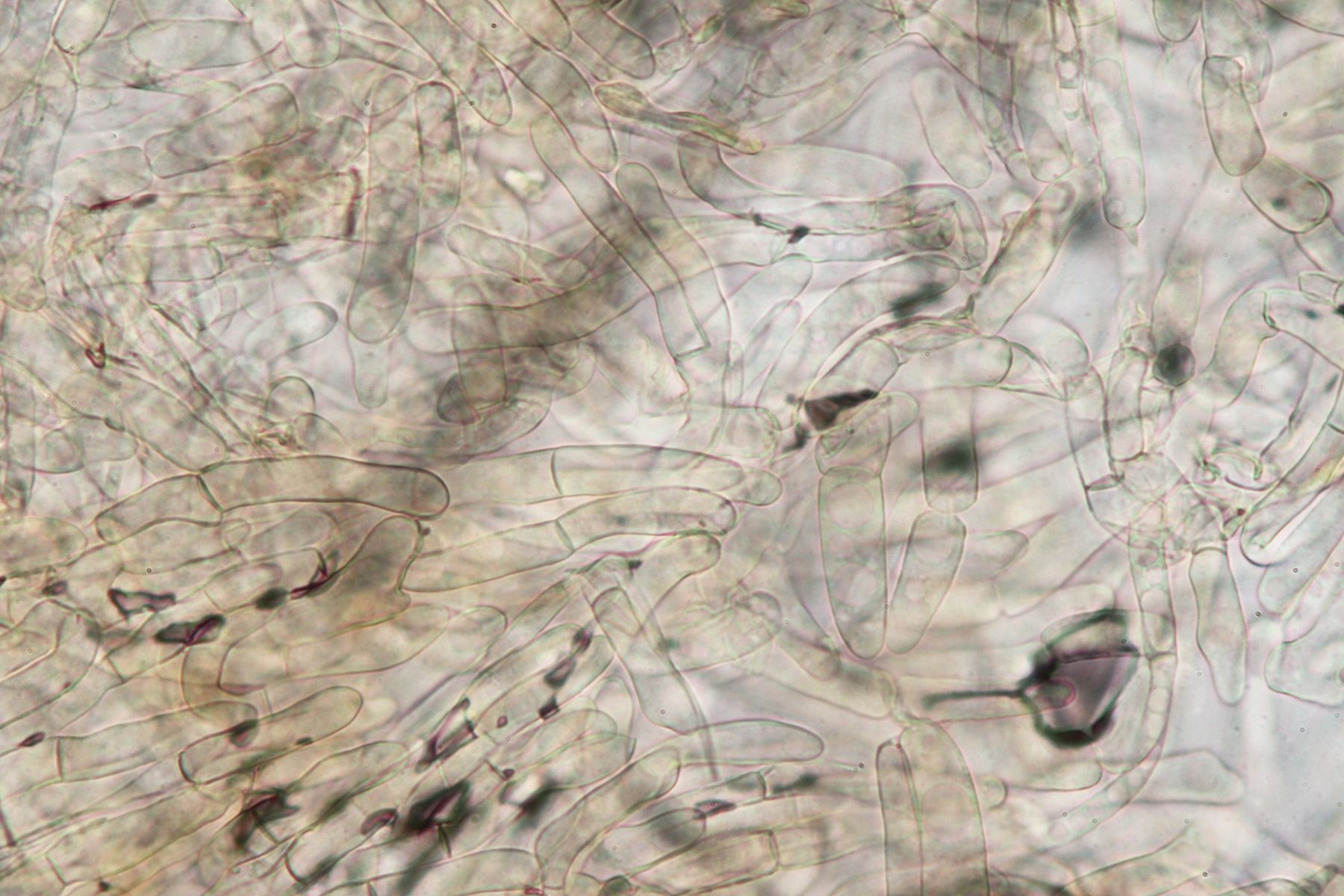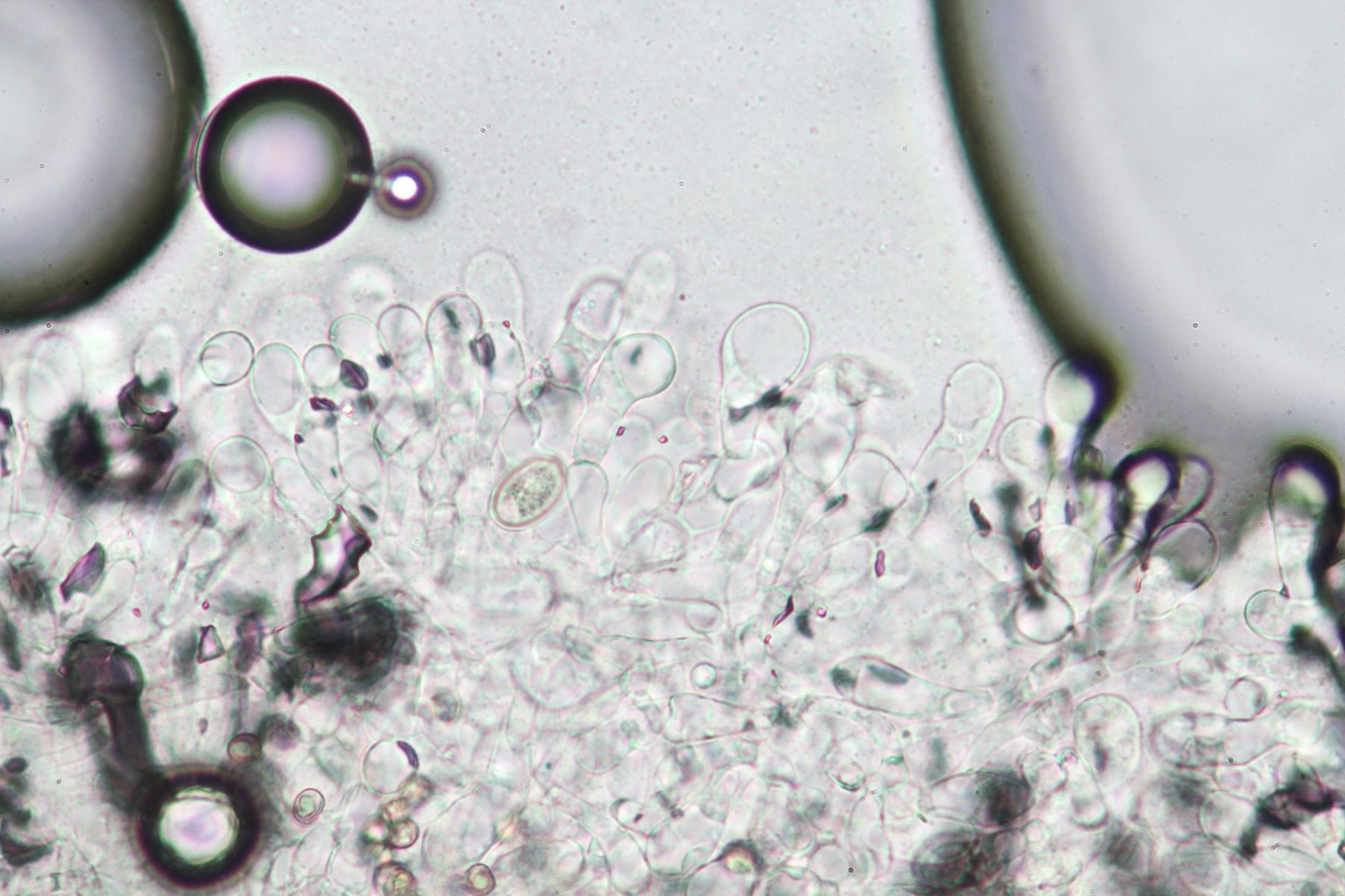 Die Sporen messen 12–“18 × 9–“11(12) µm. Sie sind ellipsoid geformt und sehr dickwandig. Sie weisen einen kleinen Keimporus und eine hyaline Kappe auf. Die Lamellenschneiden sind steril.