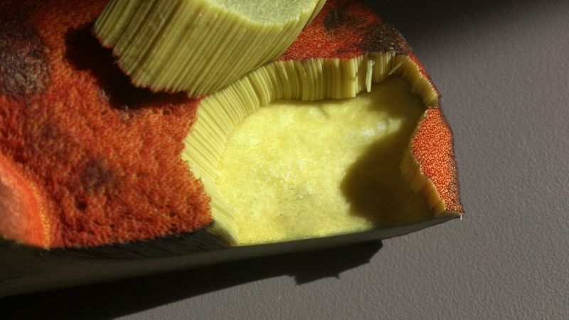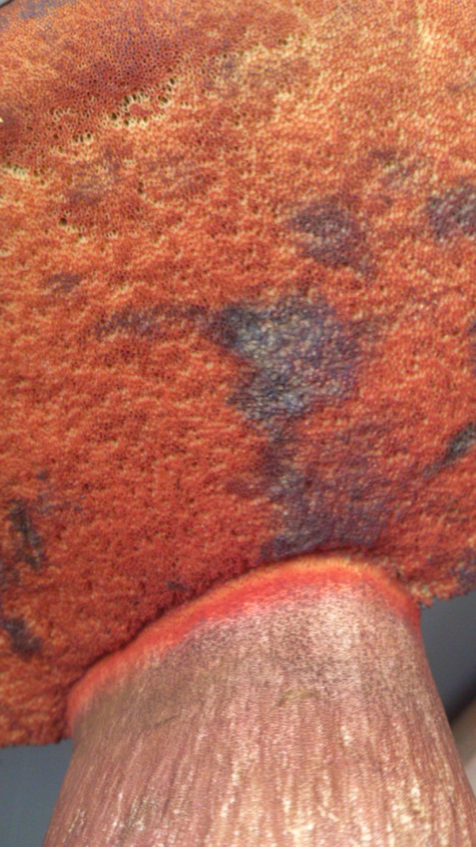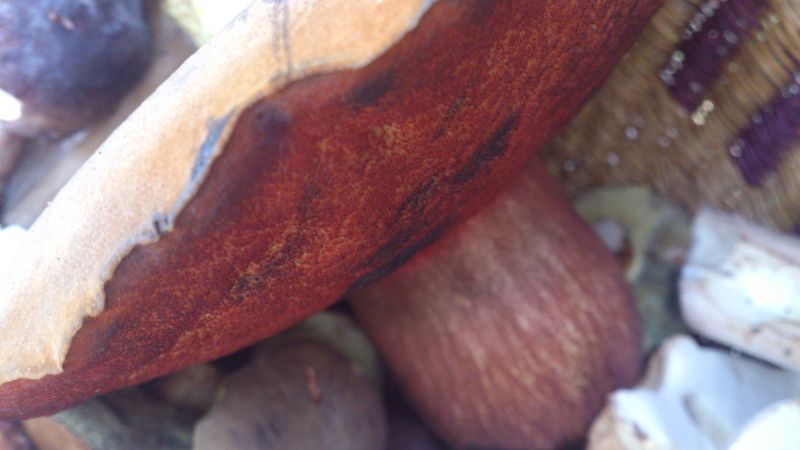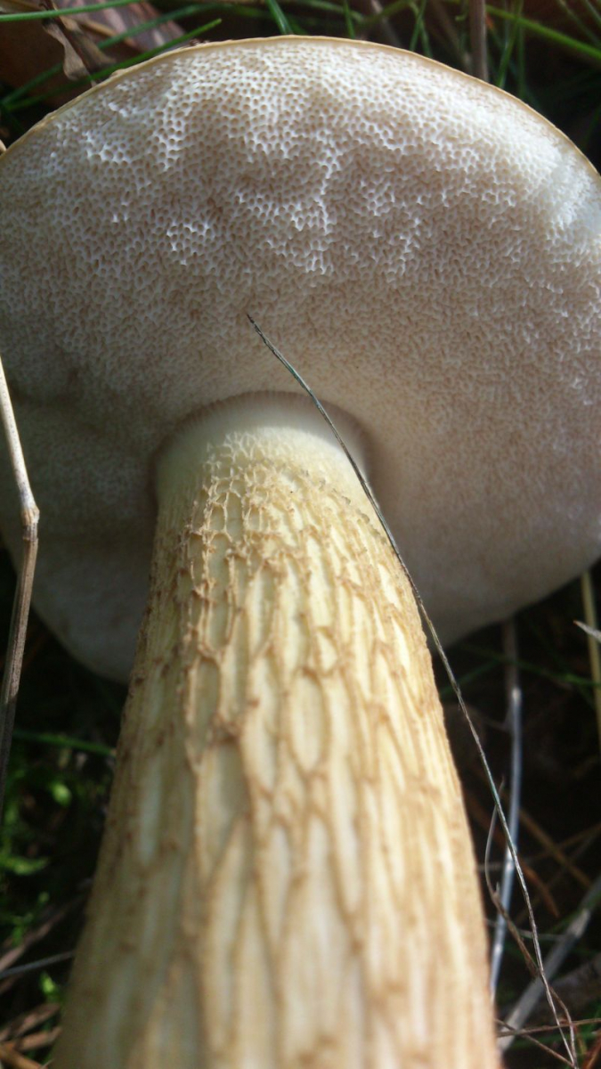 Der erste Pilz schmeckte bitter und hat größere Poren als der Steinpilz, die leicht rosa sind sowie ein auffälliges Netz am Stiel, läuft nicht an, ich vermute, es handelt sich um den Gallenröhrling???