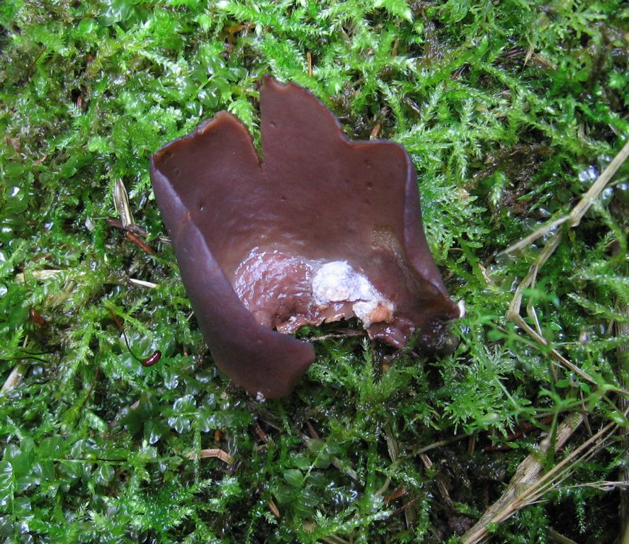 Der grosse FK , Höhe ca 6cm, Durchm. ca 10cm, aussen graubraun matt, innen ockerfarben, feucht glänzend, etwa 1mm dick.