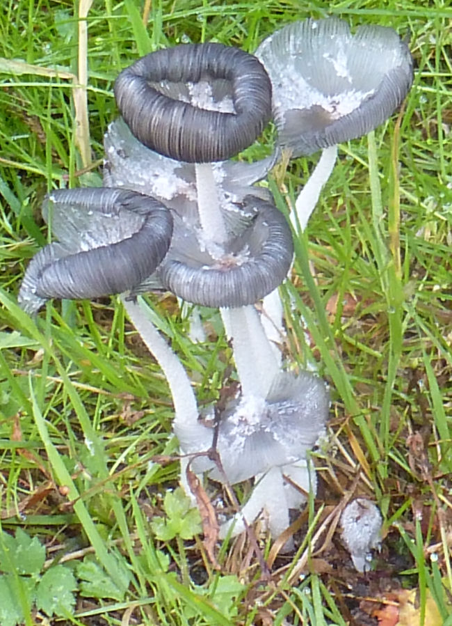 die jungpilze kamen ähnlich wie schopftintlinge aus der erde. ausgewachsen waren sie etwas kleiner als schopftintlinge. vor allem auch zarter und durchscheinend.