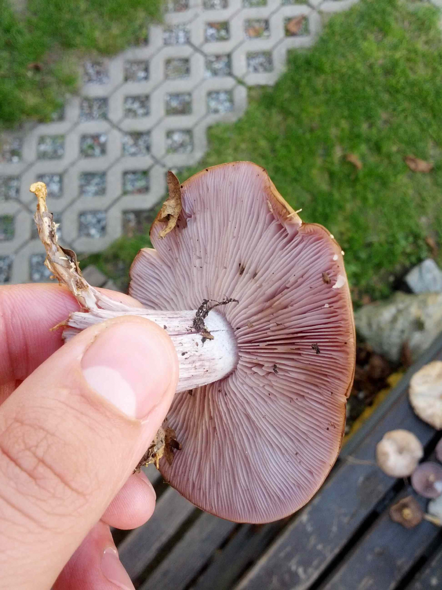 Vergleich mal mit dem violetten Rötelritterling (1) und dem Austernseitling!(2)