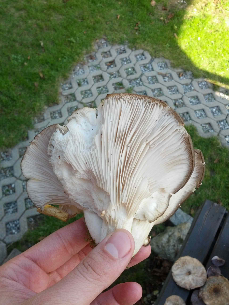 Der zweite ist auf jeden Fall ein Seitling. Welcher, kann man auf den Bildern nicht genau erkennen. Der Stiel ist z.B. wichtig. Lies dir mal die Angaben zur Pilzbestimmung durch, die oben verlinkt wurden, und mit ein paar mehr Details zu deinen Funden können wir dir sicherlich helfen! :)