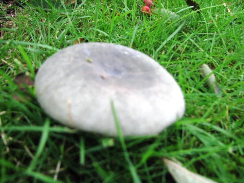 Pilz 2 wächst ebenfalls mitten auf dem Rasen, allerdings unter einer Birke.