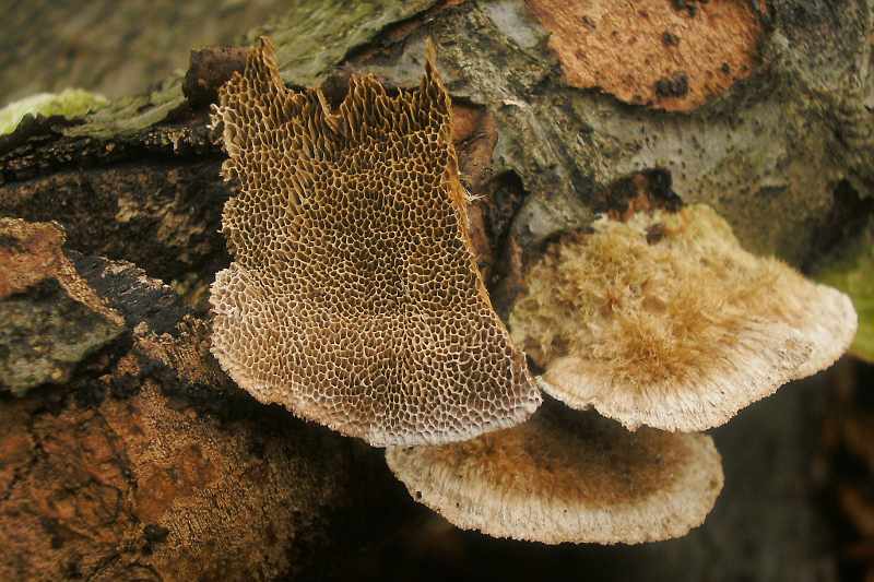 Meine Vermutung: Coriolopsis trogii, die helle Borstentramete?