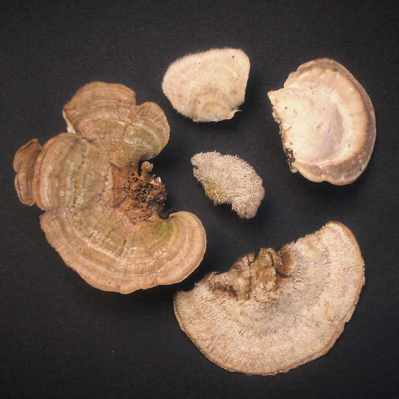 Substrat vermutlich Pappel, nur ein kleiner Rindenanteil ist sichtbar.