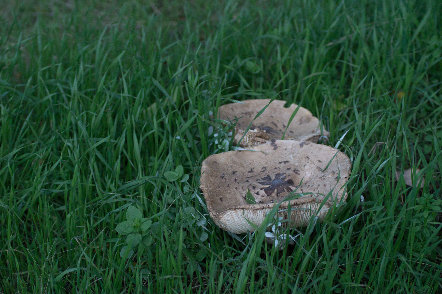 >Giftriesenschirmpilz (Macrolepiota rachodes var. venenata); Gartenriesenschirmling (Chlorophyllum brunneum)<