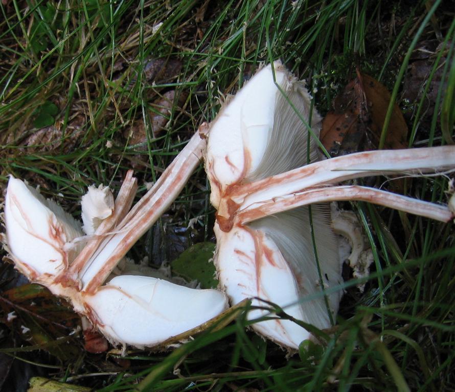 Fleisch: erst weiss, anschliessend von safranrötlich in weinbraun übergehend.