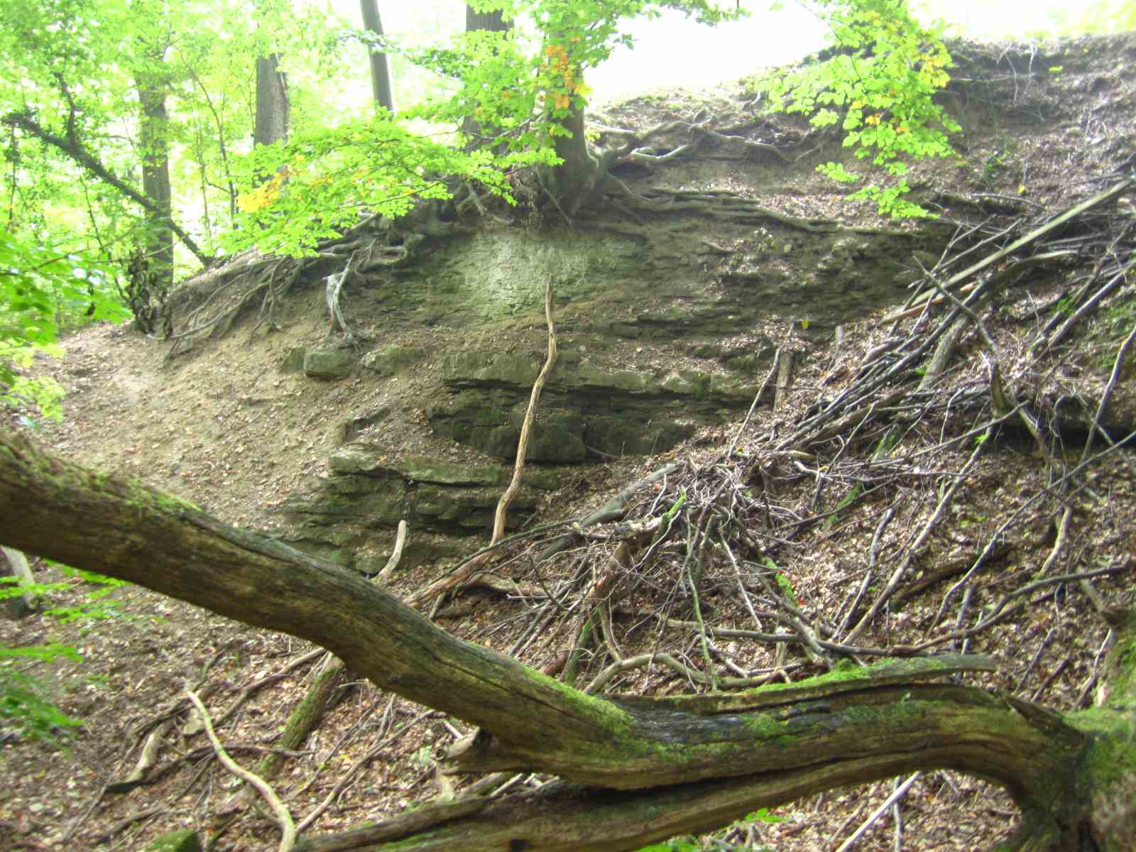 Die Stellen, wo der Kalksandstein abgebaut wurde, sind heute immer noch zu sehen.