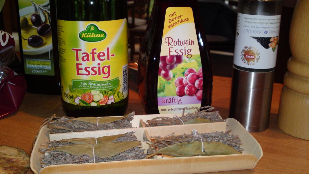 Hier die zwei Essigsorten die ich benutzt habe mal sehen ob es einen unterschied macht. Die hälfte meiner Versuche habe ich Gebraten die andere gekocht.