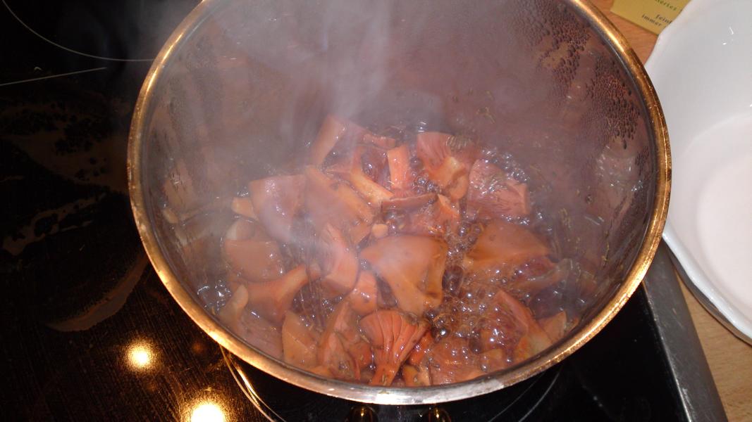 2)Pilze gekocht/in Sud gekocht [Essig Rotwein]