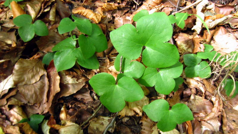 Nebenan wuchsen Leberblümchen und waren kleine Schnecken zu sehen.