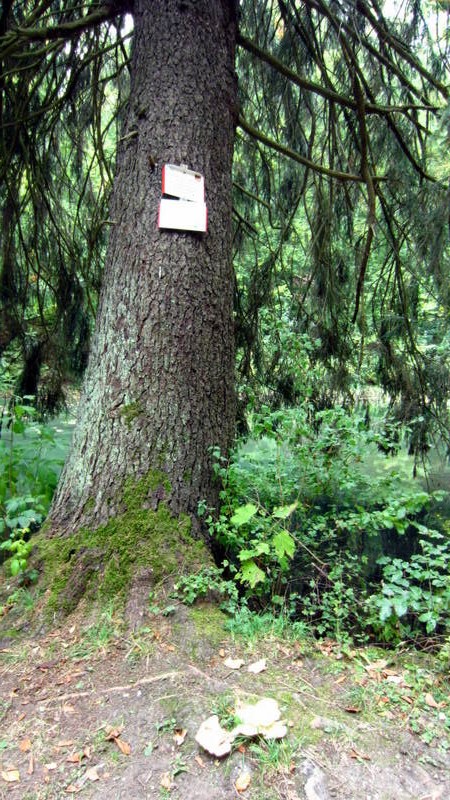 Der Porling wuchs direkt an der Wurzel einer riesen großen Fichte: