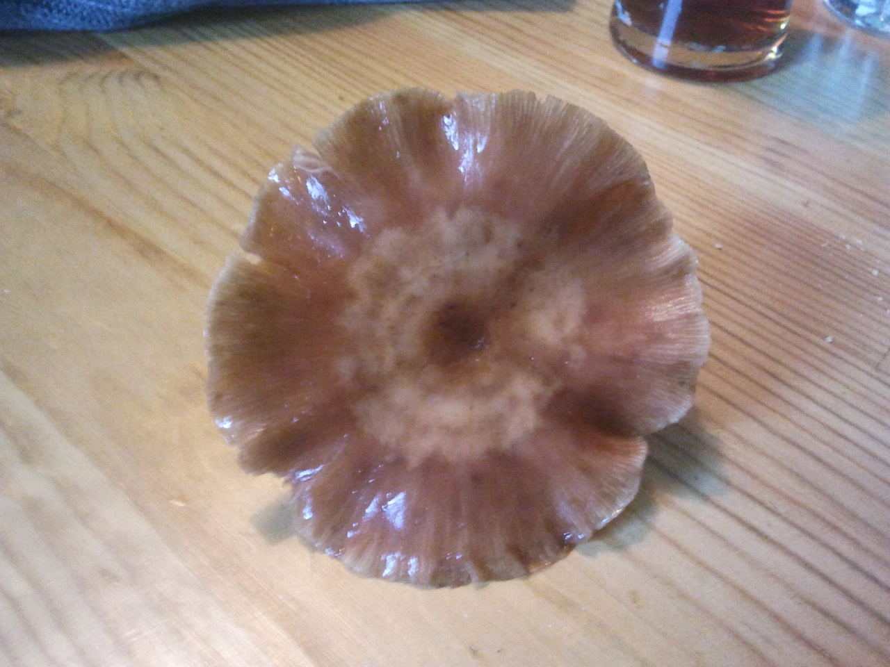 • Bei Hallimaschen, falls es nun welche sind, sammelt man auf jeden Fall nicht so alte wie diese, sondern die ganz jungen mit geschlossenen Köpfen. So manche der Unverträglichkeiten, die es mit diesem Pilz schon gegeben hat, lassen sich auf überaltertes Sammelgut zurückführen.