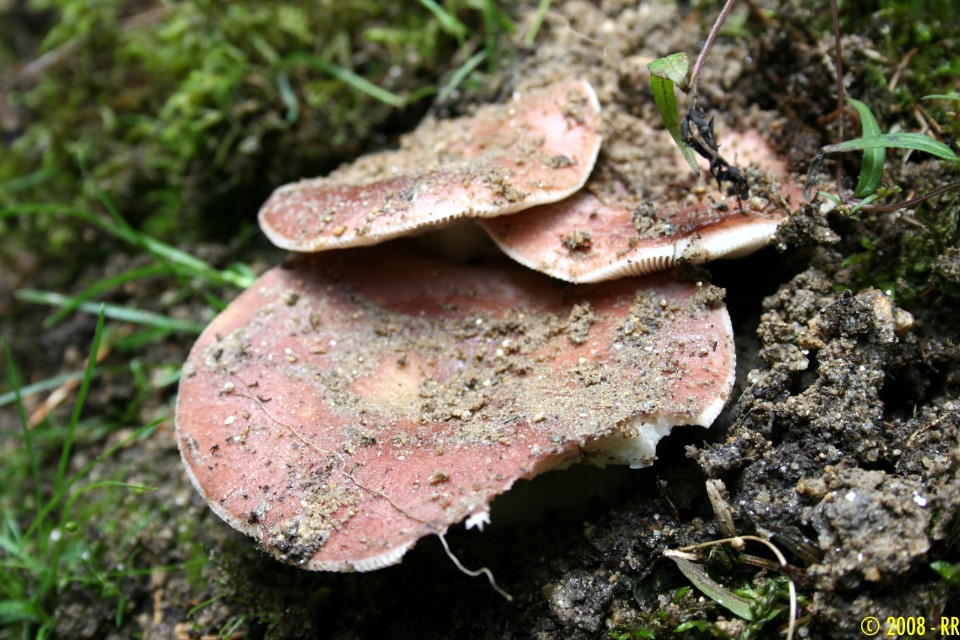 • Heute war es mehr ein Spaziergang durch einen naheliegenden Wald und nach kurzer Strecke, einer akzeptablen Menge an Pfifferlingen, einigen Maronen, Goldröhrlingen, Kuhmäulern und Perlpilzen, fand ich einige Fetzen eines Pilzes, die mein Interesse weckten. Also das Gelände etwas genauer untersucht, denn die Fragmente sahen nicht danach aus, als wären sie von einem Sammler abgeschnitten worden... siehe da: