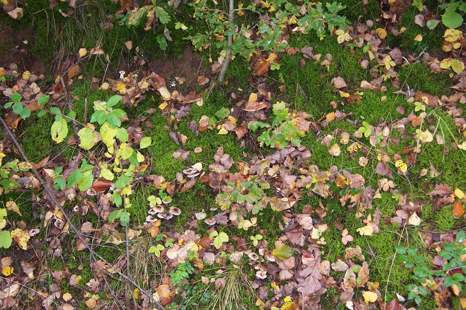 Die Pilze wuchesen auf der Grasfläche neben dem asphaltierten Weg unterhalb des Hohlweg-Hangs im Süden. Am Hang befinden sich Büsche und kleine Sträucher (Birken, Espen, kleine Eichen, kleine Rot- und Hainbuchen)