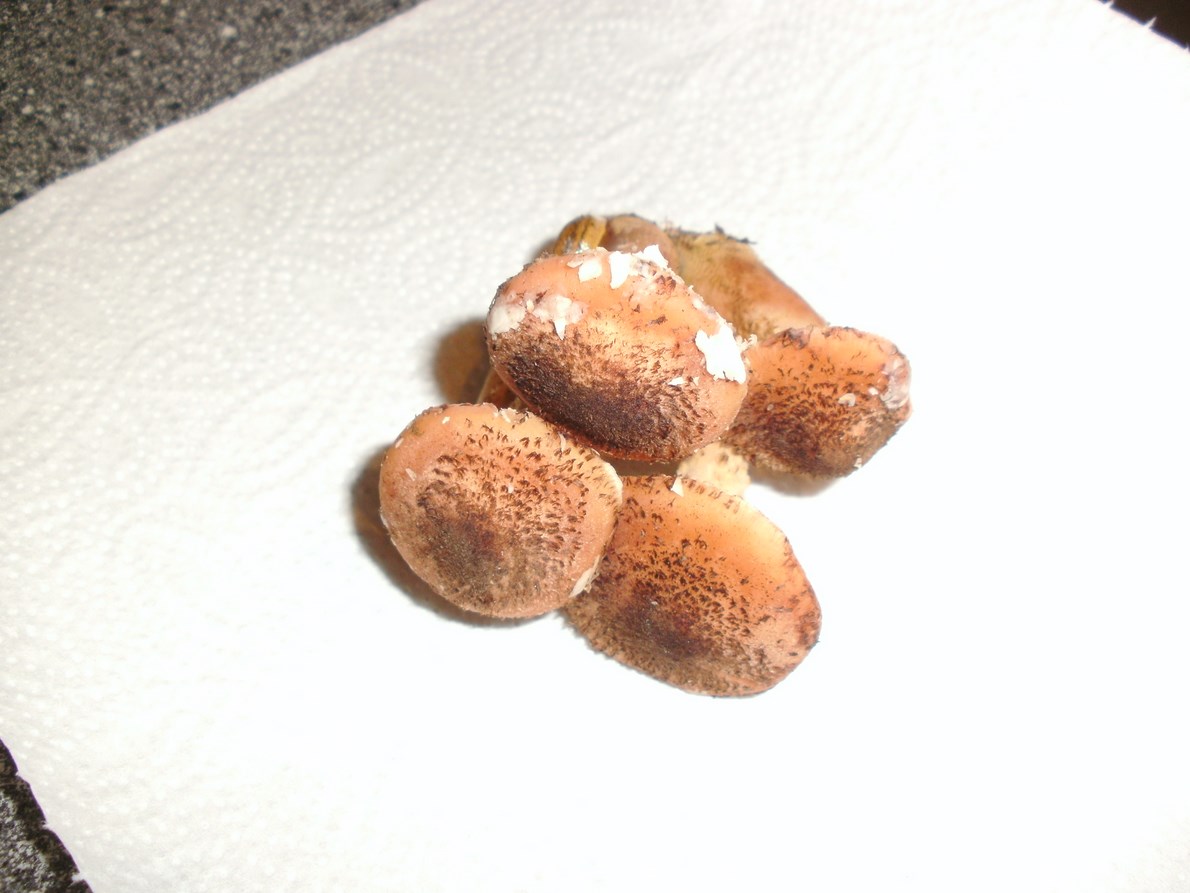 (Achso, und diese komischen weißen Schuppen sind übrigens abgefallene Lamellen von den Riesenschirmlingen und gehören nicht zu diesen Pilzen)