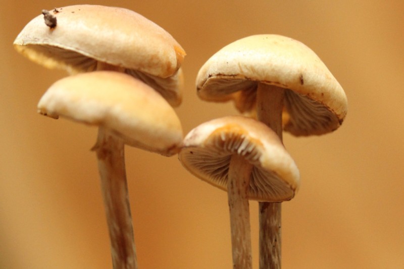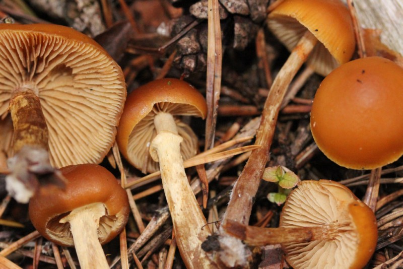 Heute ist mir im Wald mehrmals ein Pilz begegnet der von oben wie ein frischer hut des Galerina marginat wirkte. Der standort war typisch: Fischtenstümpfe oder verrottende bemooste Nadelholzhaufen. Beim näheren hinsehn erkannte ich die typische Natterung aber fand keine Manschette.