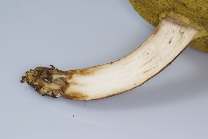 Du könntest den Längsschnitt noch komplettieren, aber ich bin eigentlich sicher, daß das Fleisch auch im Hut nicht gelb sein wird. Also zusammen mit dem cremefarbenen Stielfleisch und dem gelblichen Basismycel freue ich mich schon mal auf meine 5 Chips.