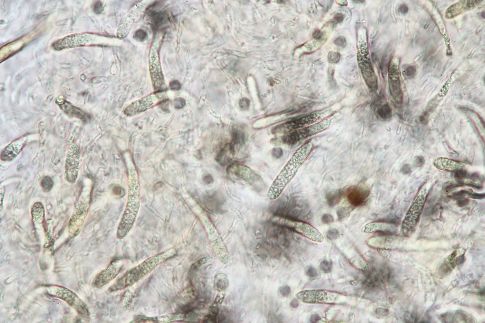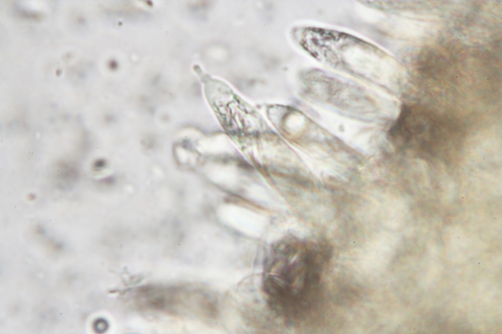 Lamellen: dicht, schmal und dünn, und wie die Randzone des Hutes gefärbt.
